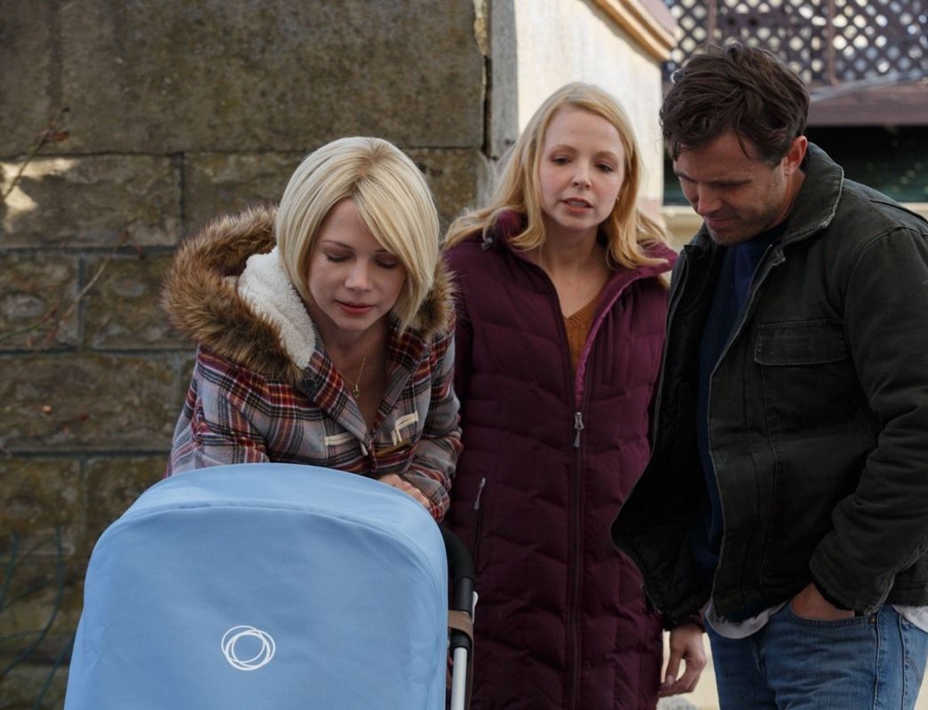 - В Ролях: Кейси Аффлек, Мишель Уильямс, Кайл Чандлер, Лукас Хеджес, Бен О'Брайэн, С.Дж. Уилсон, Анна Барышников, Гретхен Мол, Хезер Бёрнс, Джэми Теннилл