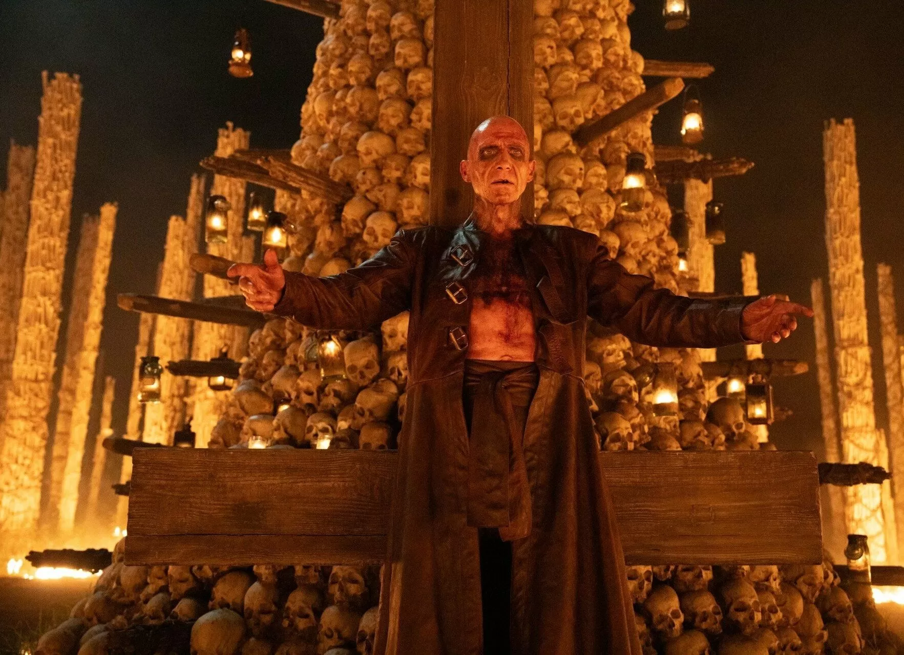Параллельно в другом уголке опустошенной вирусом ярости Британии разворачивается иная история. Доктор Иэн Келсон, ученый и гуманист, обосновался в мрачном святилище, которое он называет Храмом костей. Это сооружение из останков погибших служит ему одновременно домом и напоминанием о масштабах трагедии. Не теряя веры в науку, Келсон продолжает исследования вируса, проводя эксперименты с зараженным по прозвищу Самсон. Его работа приводит к открытию, способному перевернуть представление о болезни и дать человечеству шанс на возрождение, но судьба готовит встречу двух противоположных миров, где столкнутся слепая жестокость фанатиков и искра надежды, зажженная наукой.